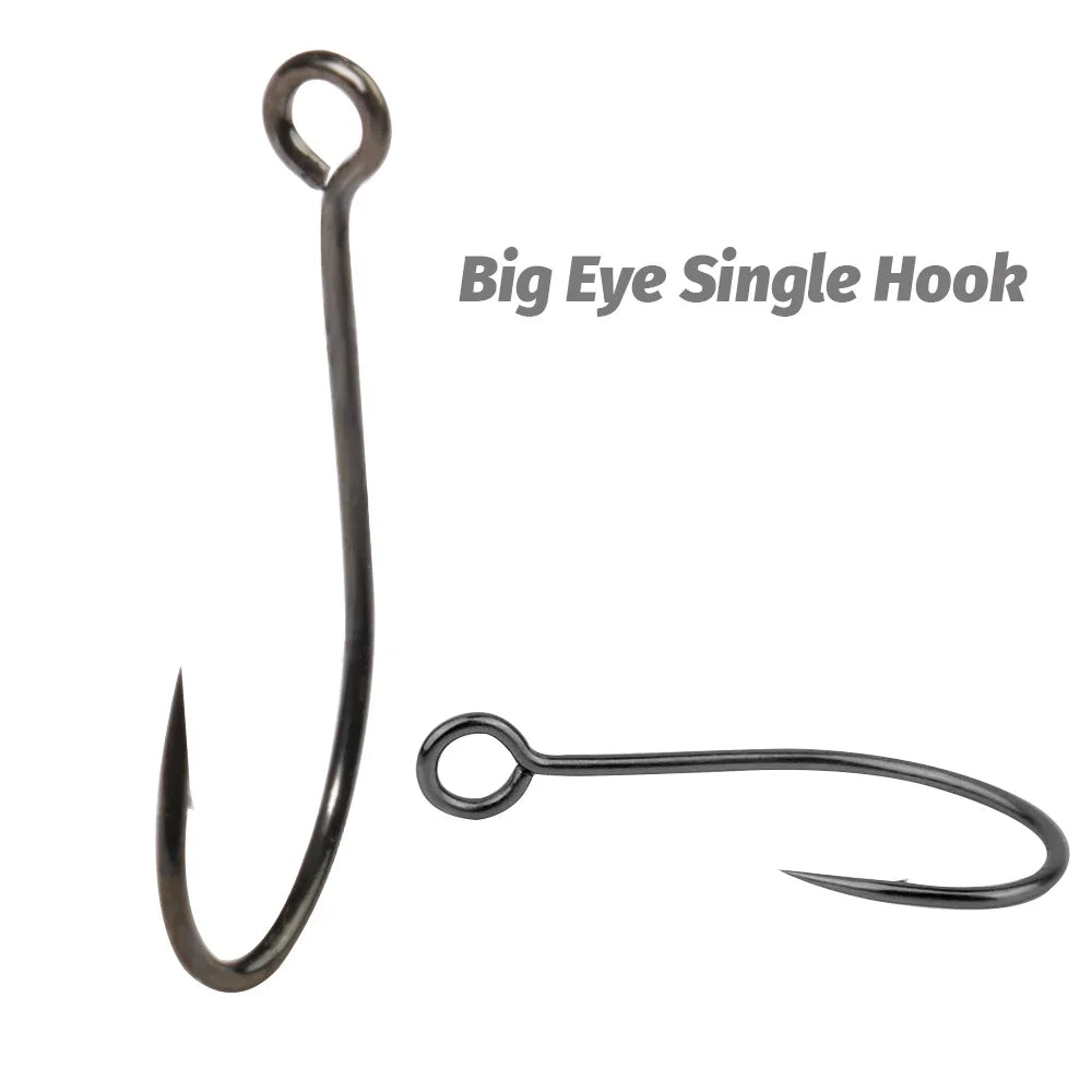 20PCS Big Eye Single Hooks – Sharp Barbed Carbon Steel Circle Fishing Hooks for Worms, Lures & Fly Fishing (Size 2#–10#)