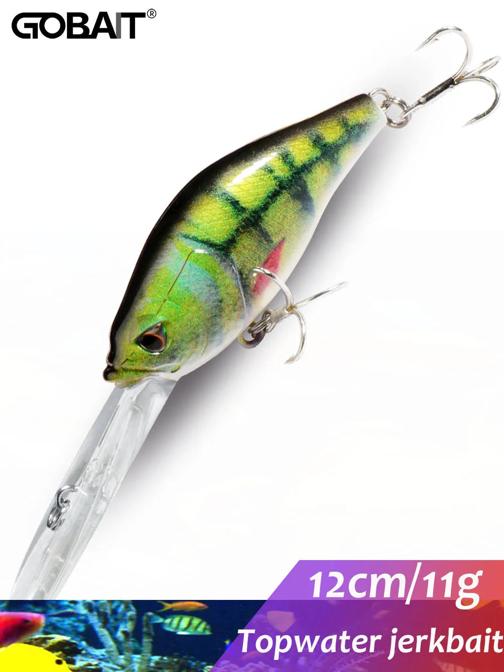 GOBAIT floating lure minnow 12g tackle hook sea kit pesca Jerkbait tool long casting spinning spinnerbait pesca pike popper professional trout wobbler carp holographic skin excellent imatate real fish vividly 3D pain strength treble hooks laser plating artificial bait depth 0-3m