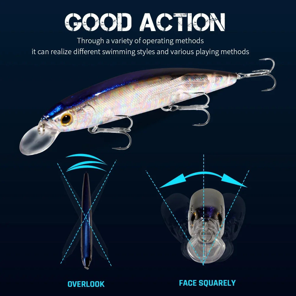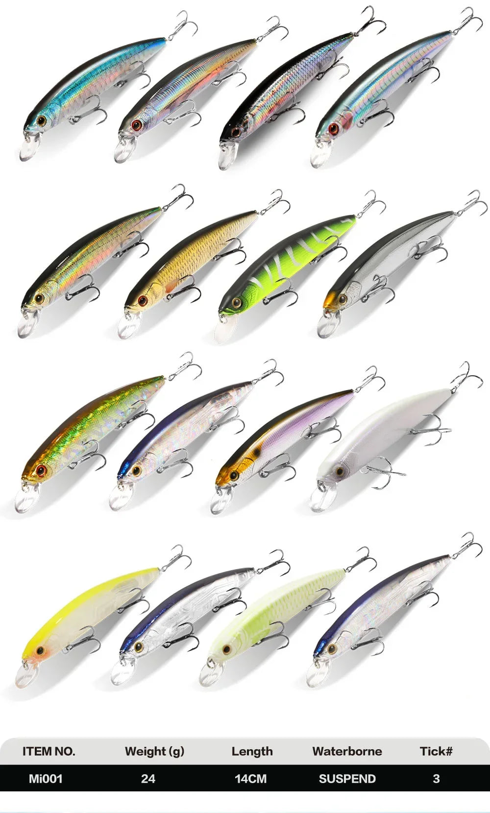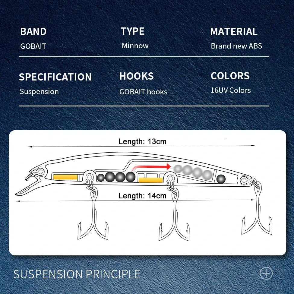 GOBAIT Floating Minnow 14cm 24g Top Water Fishing Lure Weight System HardBait Suspending Wobbler 3 Treble Hooks Jerk Bait 0-1.5m