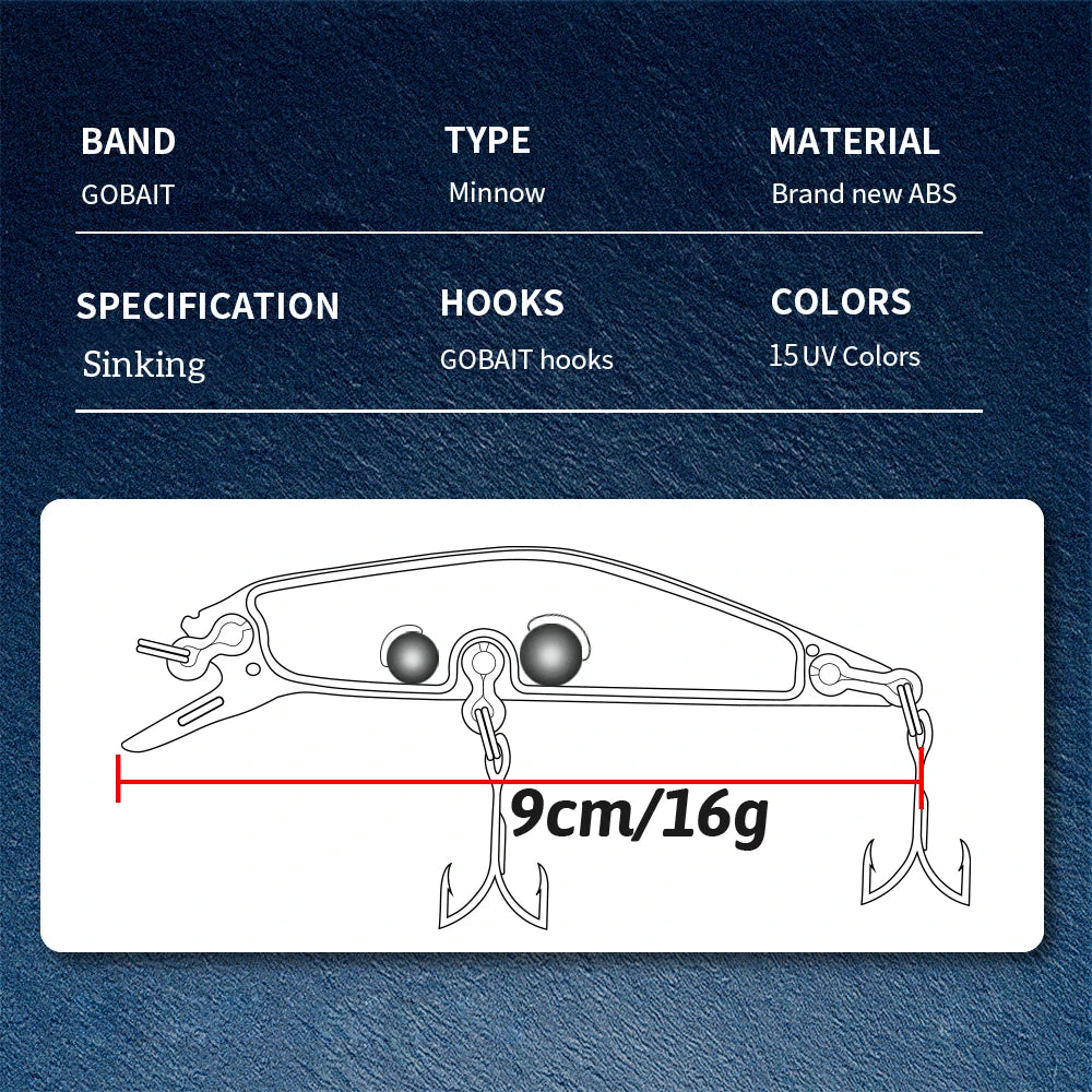 GOBAIT Sinking Minnow Bait shore cast Lure Treble Hooks Swimbait Pesca Tackle Crank Sea Pike Bass Trout Long Casting Crankbaits silence Hard Bait Fishing Accessories Jerkbait Professional Wobbler for Trolling Artificial Baits